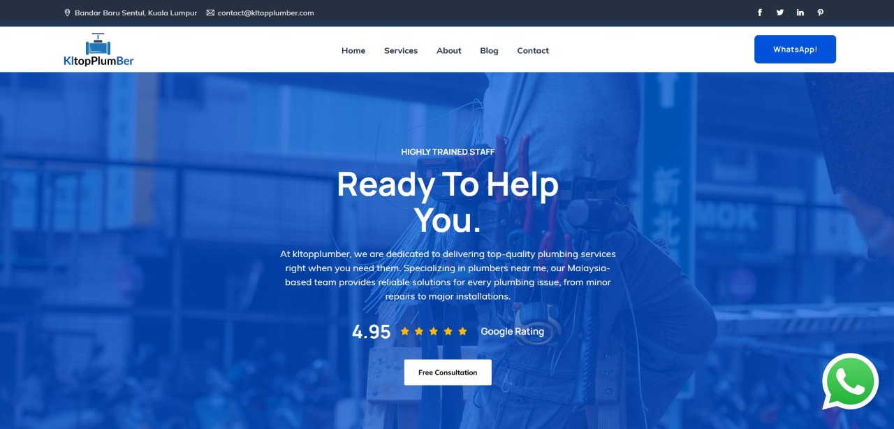 Top Plumber offers a range of experiences for customers in Kuala Lumpur. Their website boasts hundreds of happy clients, with glowing testimonials. Customers can reach out via phone, WhatsApp, or an online form for support.